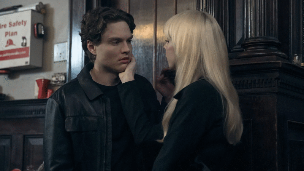 O ator Hamish Linklater está ótimo como Cipher, ele incorpora muito bem esse vilão frio e calculista. Depois temos o personagem Thomas Godolkin (interpretado por Ethan Slater) que, de fato, também entrega. Mas pra mim o destaque maior continua sendo Linklater, ele está sempre presente, é uma presença excelente e é prazeroso acompanhar, mesmo sendo “do mal” em certa medida ou, melhor dizendo, em fronteira moral nebulosa. Parte do que funciona é justamente o fato de não sabermos exatamente quais são as intenções dele, fica turvo, e isso rende.