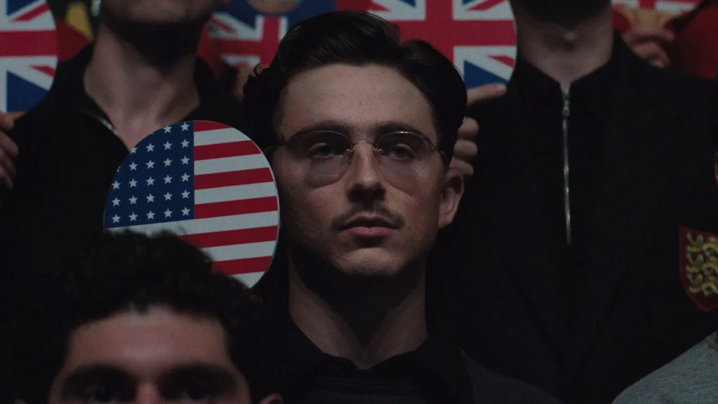 Desde os primeiros minutos, o longa nos apresenta a Marty Mouser, um protagonista movido por uma necessidade de vencer. A narrativa não se preocupa em suavizar suas atitudes ou torná-lo simpático. Pelo contrário: tudo é excessivo, impulsivo ou barulhento, fazendo com que o sentimento de caos cresça junto com suas ambições.