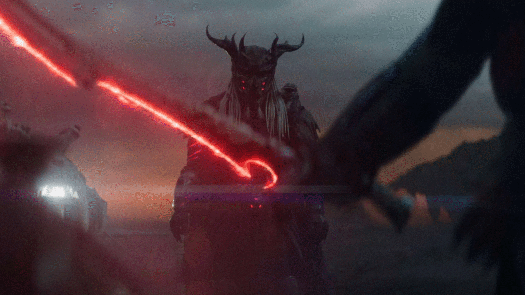 Desde o início, somos apresentados a um protagonista rejeitado pelo próprio pai e ignorado por seu clã. A jornada dele é simples, quase arquetípica: provar seu valor. E assim o longa não tenta parecer mais complexo do que é. Essa honestidade narrativa funciona demais, porque dá espaço para que o filme brilhe justamente no que faz melhor: construir tensão, ação e uma mitologia renovada.